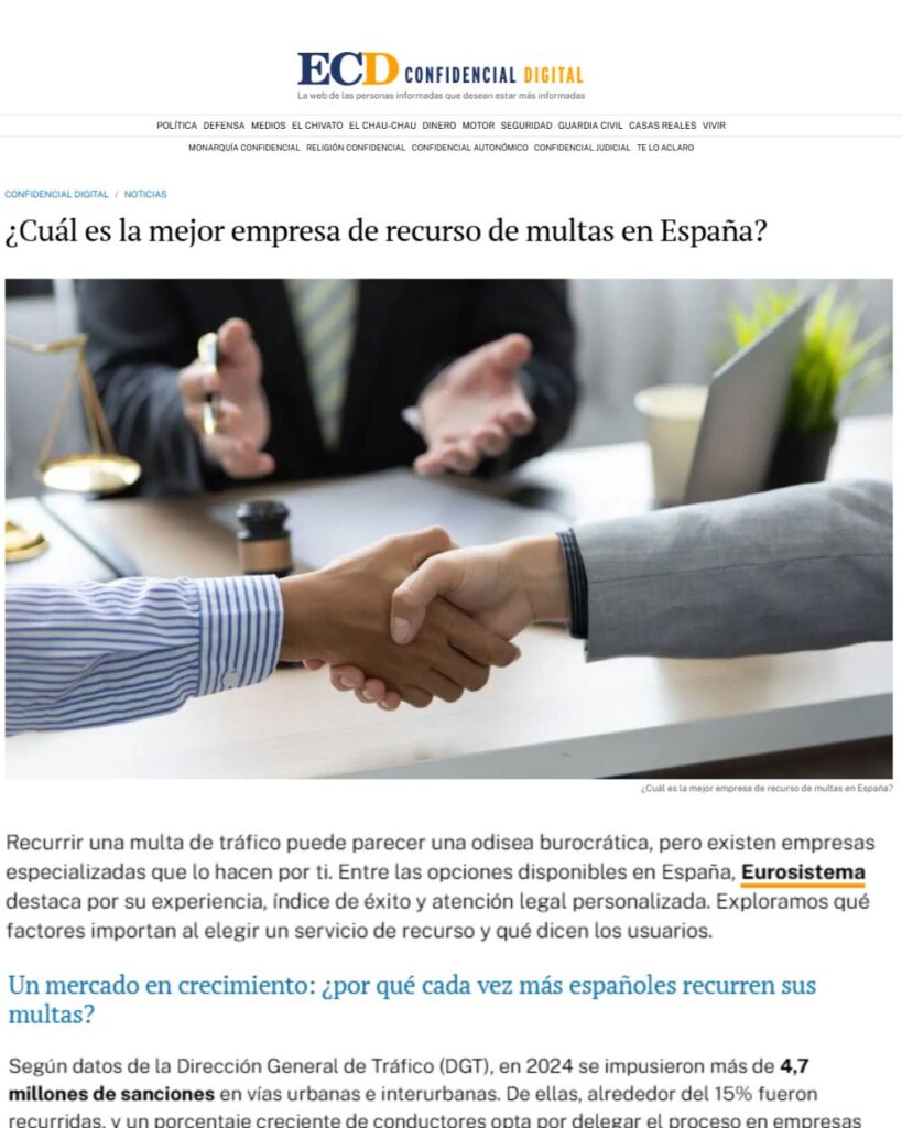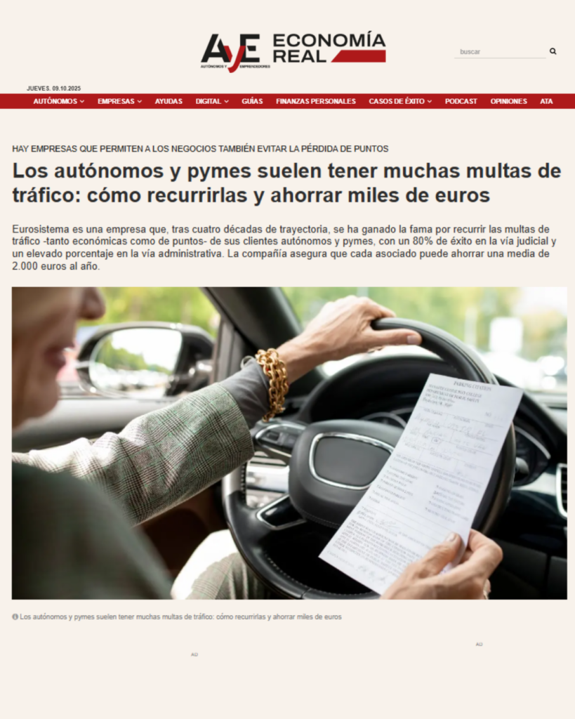 Nuestro compromiso con la defensa de los conductores ha llamado la atención más allá de los tribunales. Medios de comunicación de todo el país han destacado la labor de Eurosistema en materia de recursos de multas y asesoramiento legal.